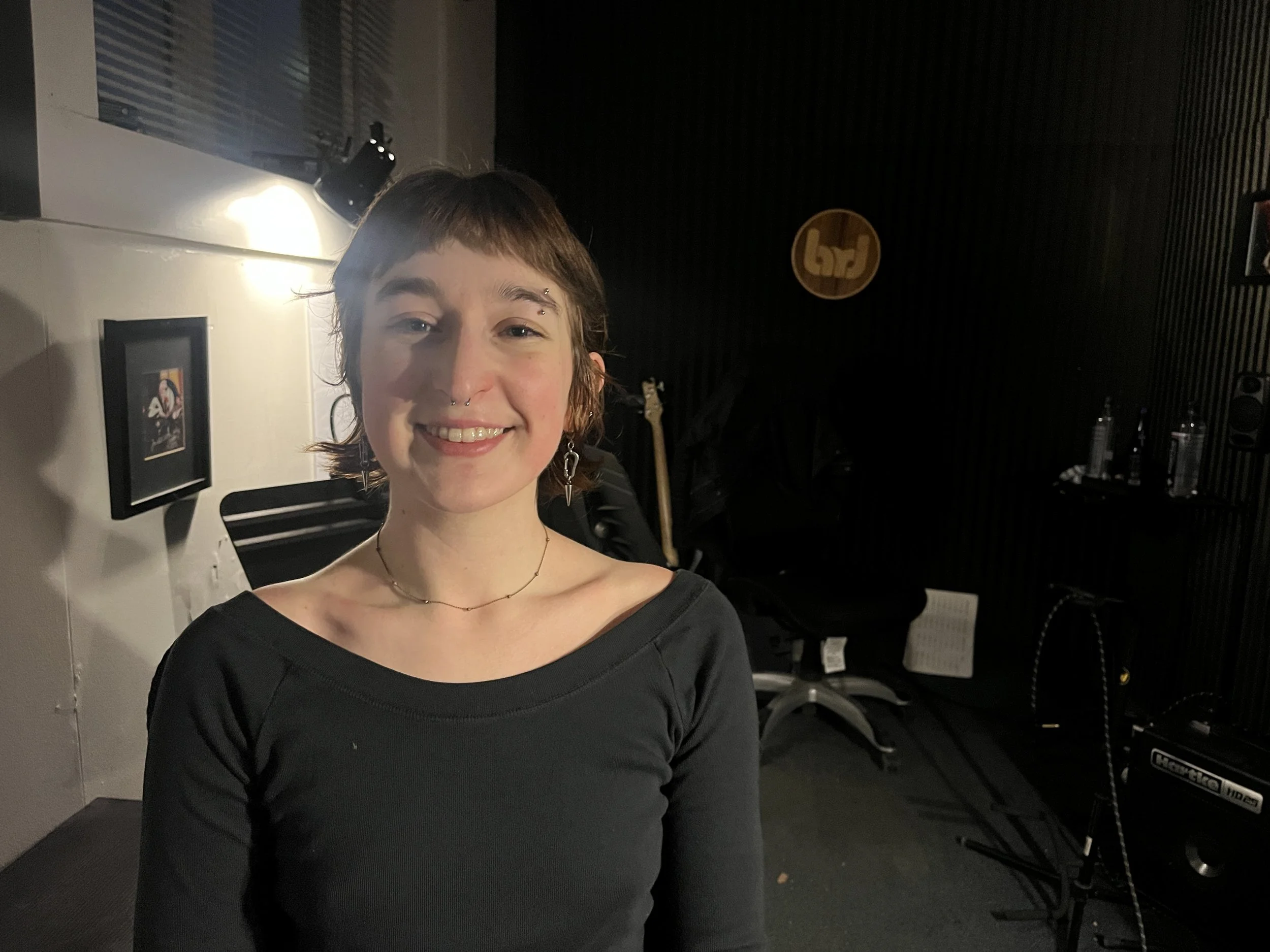 The styles Sophie most prominently plays are rock, jazz, and funk, however they aim to integrate elements from a variety of genres into their playing. Sophie strives to provide her students with a wholistic approach to drumming that touches on a little bit of everything. She hopes to teach students not only the music they want to learn, but also how to go about learningmusic in the first place. This includes focus on listening skills, practice skills, and introducing them to resources that will help them to continue learning outside of lessons.